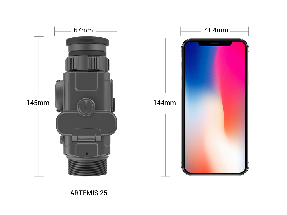 The 12um thermal imaging sensor with less than 25mK NETD offers Sharp, richly contrasted images while retaining the accuracy of the day scope. Compared with 17um sensor, it has a lower FOV, looks sharper and more detailed enabling better object identification capabilities.
